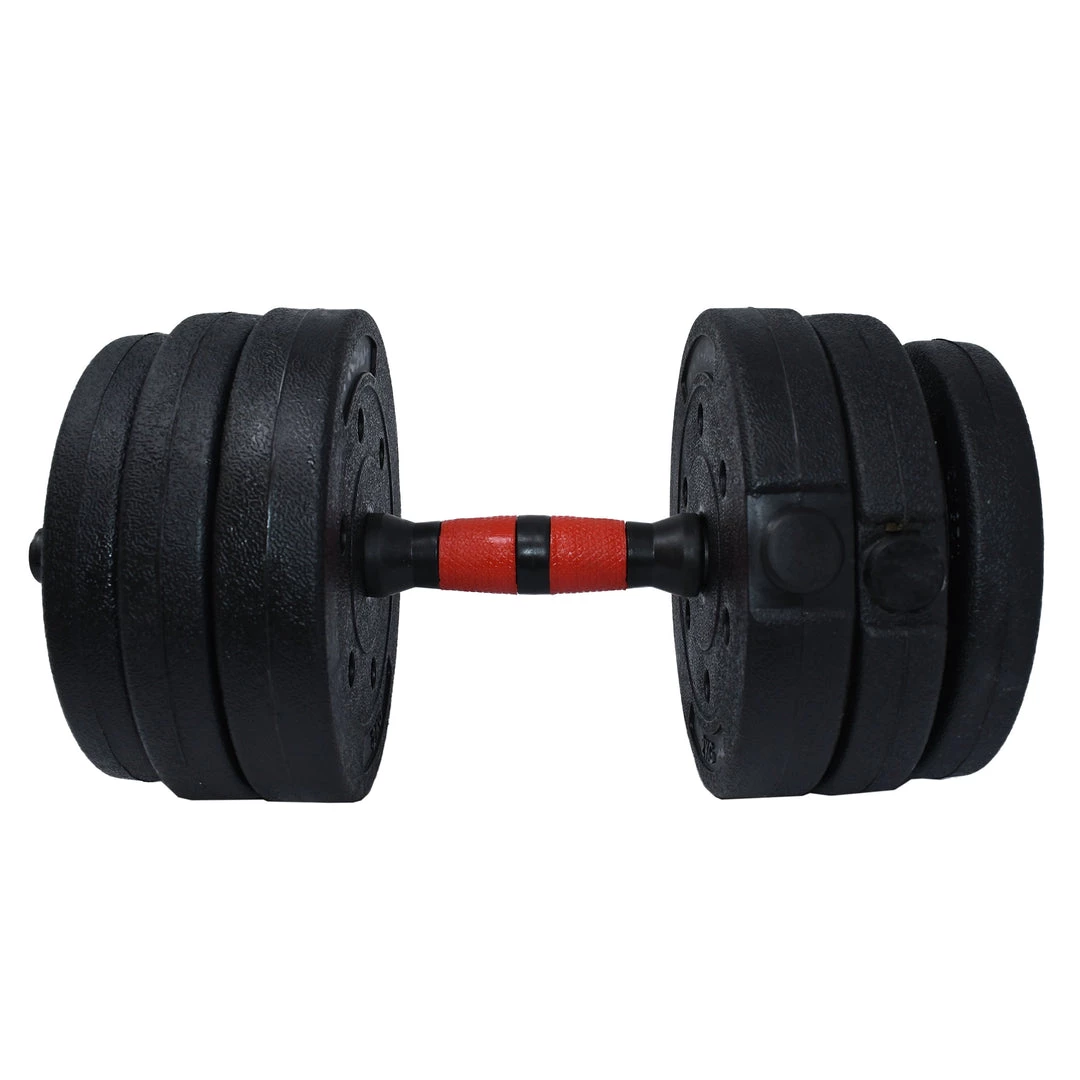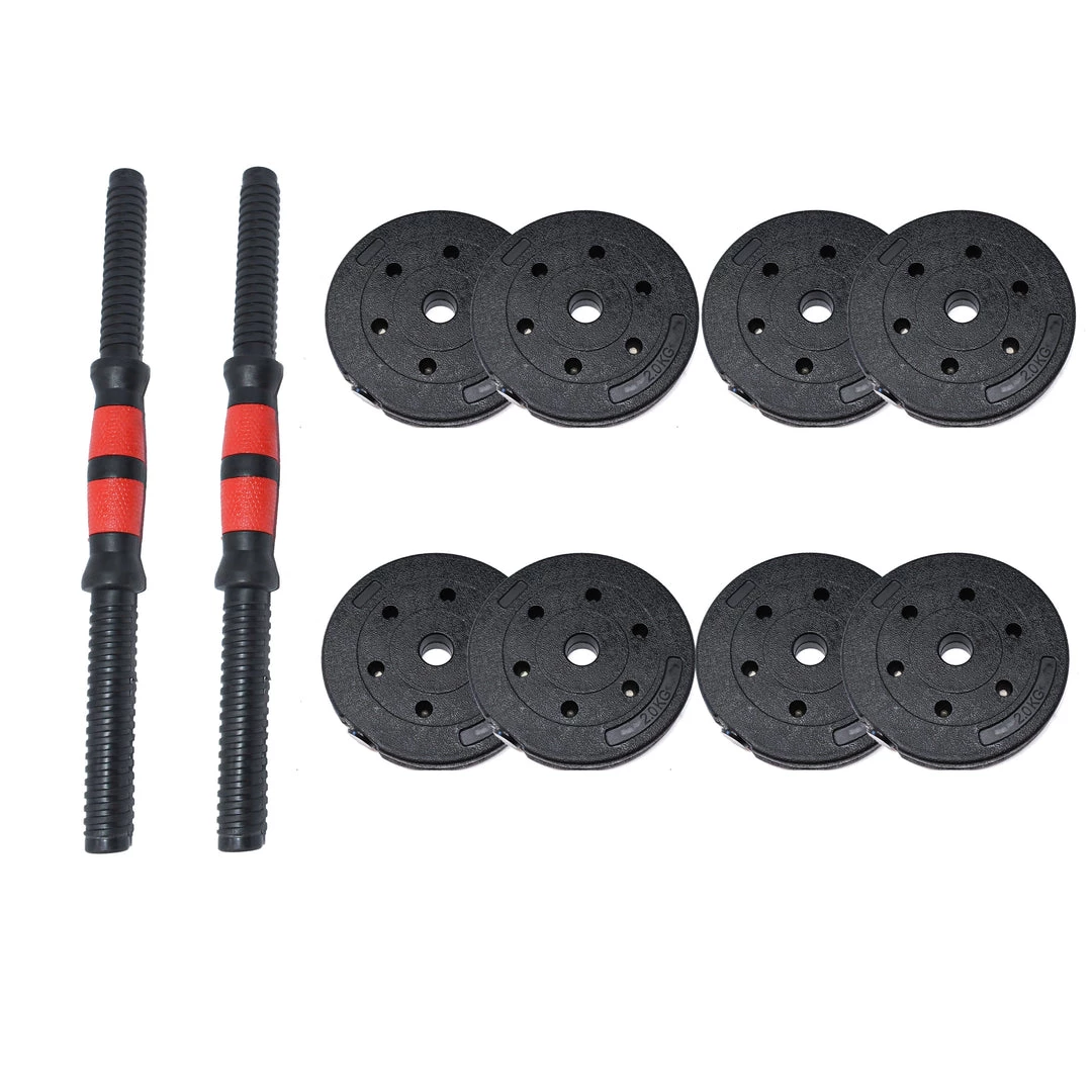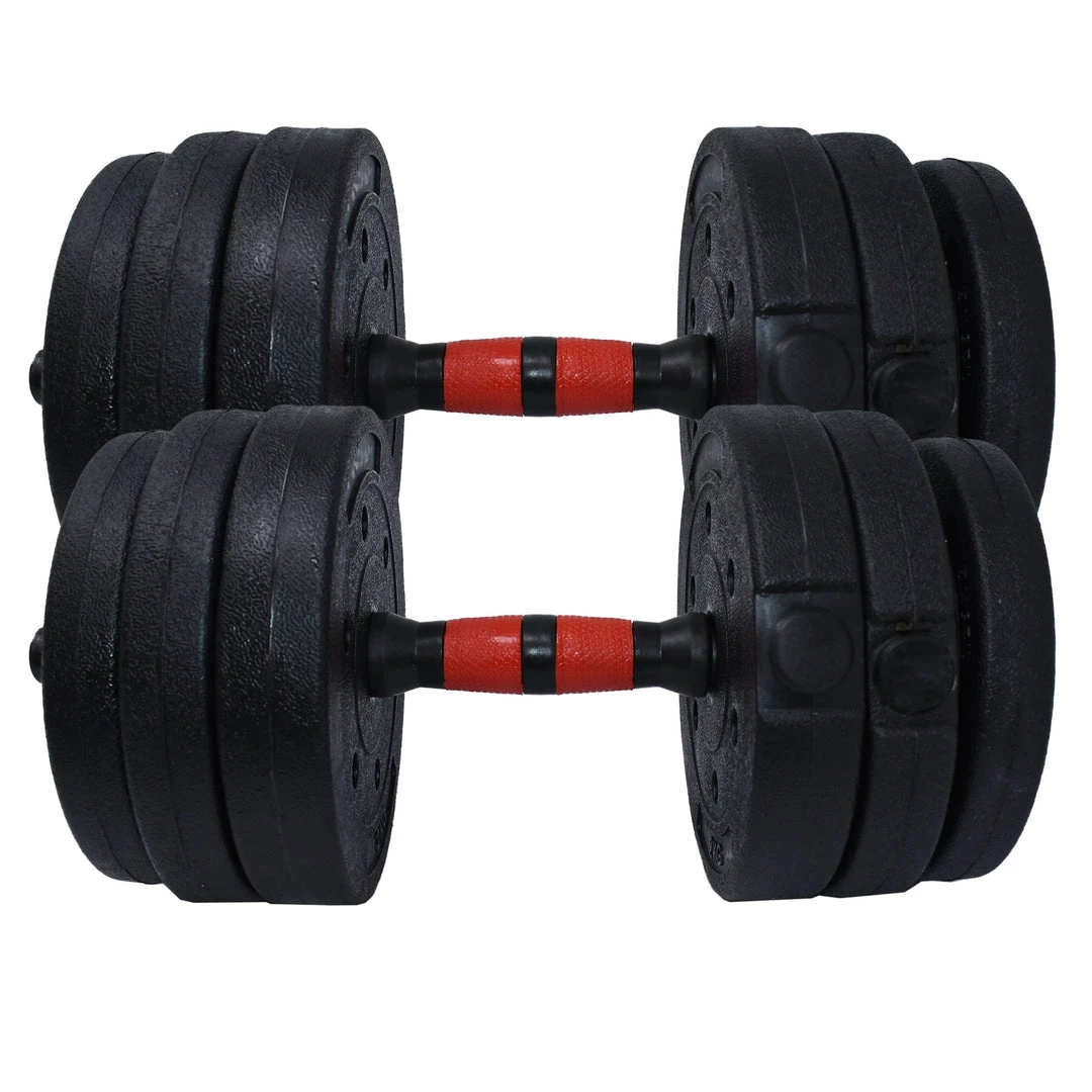 Upgrade your home gym, and train at home, the office, or on-the-go with ALEKO’s Adjustable Dumbbell Set of 2. Made for toning and strength workout usage, consistent use can increase muscle mass, improve muscular endurance, and encourage fat loss. This complete set weighs 33 pounds (15 kilograms) and consists of individual plates for weight customization. Designed with safety and functionality in mind, the handle is coated with rubber to prevent slipping from hands. Constructed with wear-resistant and non-slip material, these dumbbells better protect your floor. Made from a durable, and high quality blend of concrete and plastic, this set is built for prolonged use. Suitable for beginning, intermediate, and advanced users.