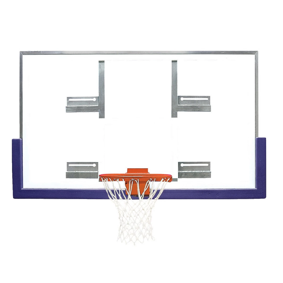 Make the transition… Go from old fan-shaped steel or glass backboards to popular 42″ x 72″ rectangular glass backboards normally without modification or relocation of your existing wall or ceiling support structures • The 35″ wide x 20″ high rear structure mounting pattern is the standard in the industry for most fan-shaped gym backboards and structures • Unconditional lifetime warranty.
