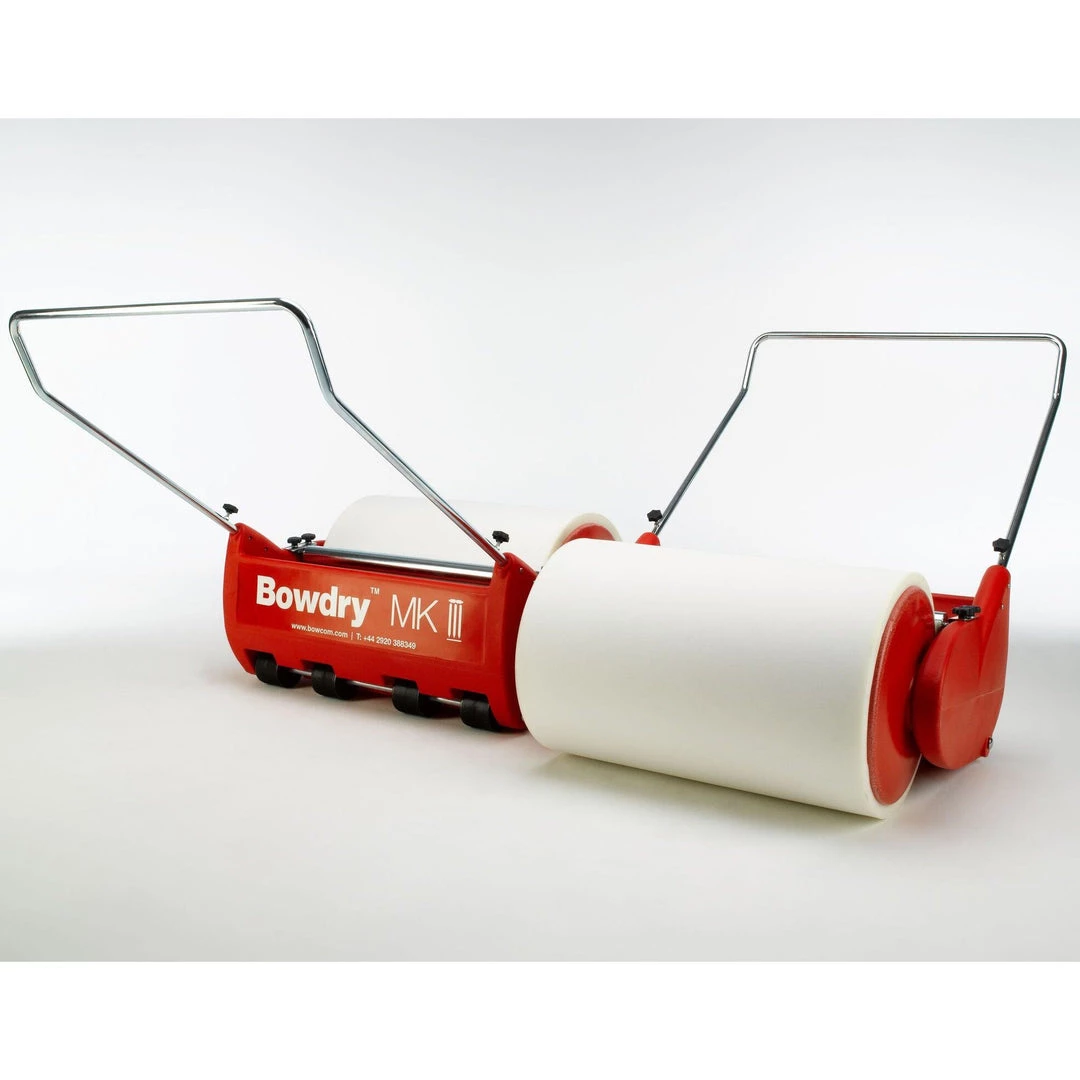 Bowdry MK III incorporates a wider, durable foam roller that efficiently absorbs the water and does not damage turf. An integrated storage tank collects the excess water and can then be easily emptied from a valve located on the side panel. Bowdry MK III also retains a four wheel chassis that evenly distributes the weight, ensuring effective water removal is achieved even on the finest turf.