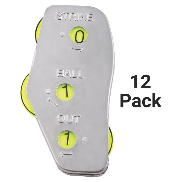 Keep count of strikes, balls and outs with ease with the Champion Sports 3-Wheel Steel Umpire Indicator. Designed with three rotating wheels and a stainless steel frame, this umpire indicator keeps the count while also being durable enough to withstand regular use. This indicator is small enough to fit in a pocket, making it convenient to keep track of the count during the game.