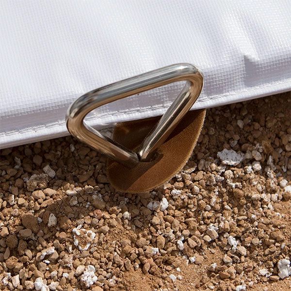 - Steel spike and leather tab to lock bases into place