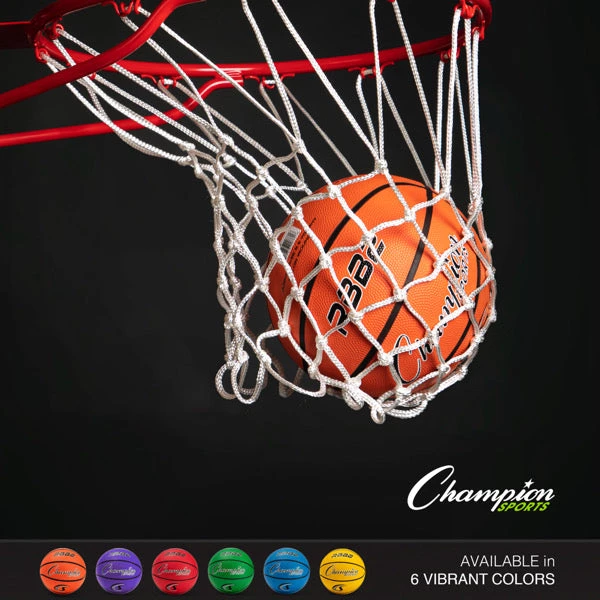 The Champion Sports Pro Rubber Basketball is designed for junior players getting into the game. The rubber basketball is made with a 2-ply butyl bladder that has been wound with nylon for improved shape and air retention. The size 5 ball is significantly lighter than an official league basketball and much easier for small hands to grip and control. It comes in orange and features heavy-duty construction to help it stand up to even the most powerful shots.
