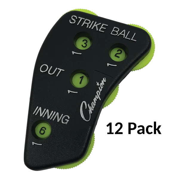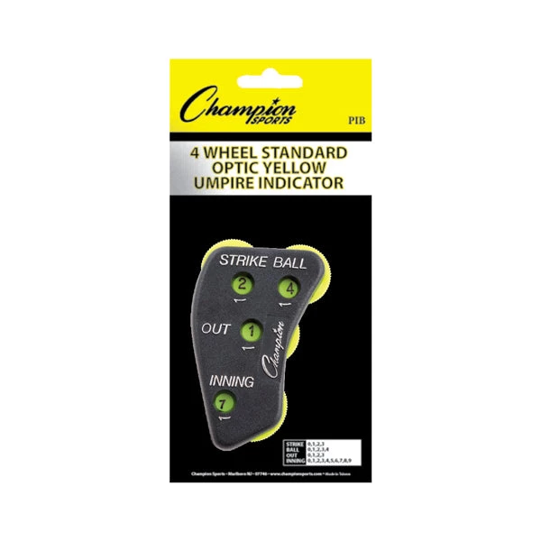 Designed with four rotating wheels, the Champion Sports 4-Wheel Plastic Umpire Indicator easily tracks balls, strikes, outs, and innings throughout the game. Designed to withstand conditions such as rain and dirt, this plastic umpire indicator is perfect to ensure accuracy by umpires throughout the game.