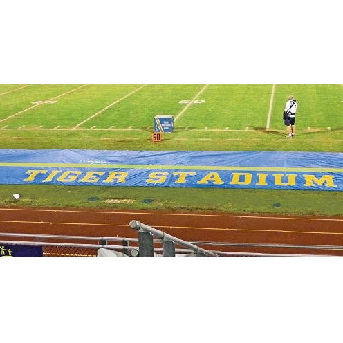 Protect the field while promoting your brand. Stadium sidelines see more traffic than the field, ensure that you are shielding them from overuse, while showcasing team spirit when you choose a customized sideline tarp! With 13 colors to choose from, CoverSports can tailor your football sideline tarp to fit exact specifications with their in-house printing services.