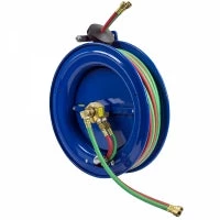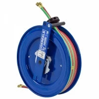- WELDING GAS SWIVEL – External 90º full-flow dual ported brass swivel with VITON seals offering both connections from the same side of the reel. No need to remove the reel from its mount.