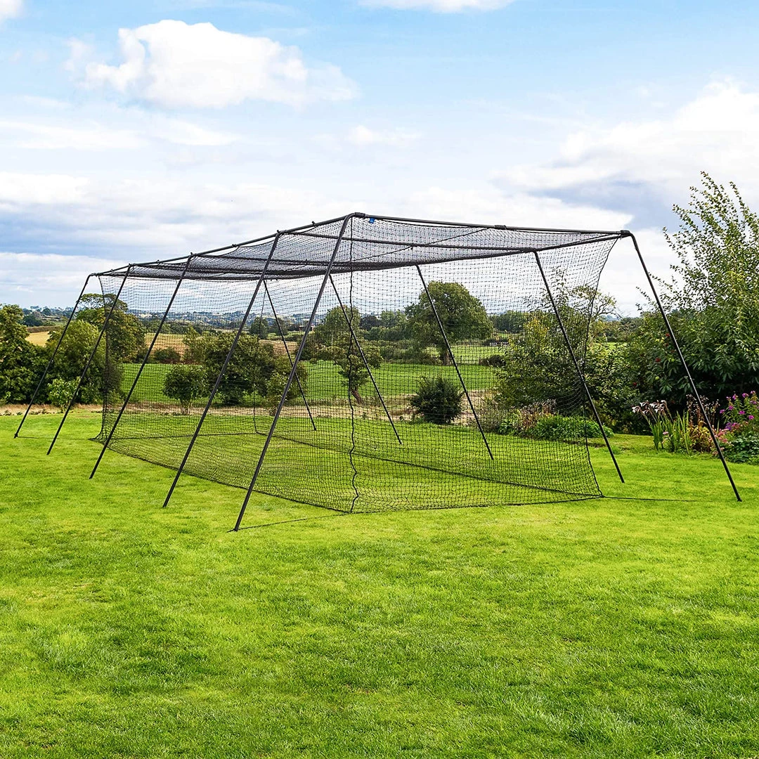 Complete Trapezoid Baseball Batting Cage for all surfaces. Made from 32mm powder coated steel tubing, galvanized steel connectors, #42 weight UV treated rot proof netting.