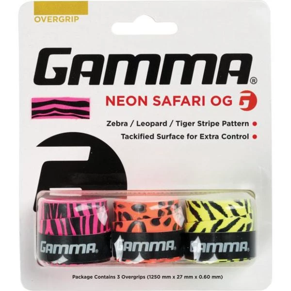 GAMMA Neon Safari™ is an innovative overgrip that combines performance with bold new animal print patterns in three hot neon colors to make the ultimate performance statement on the court. A proprietary high tac polymer surface combines traction with moisture absorption for a non-slip grip.