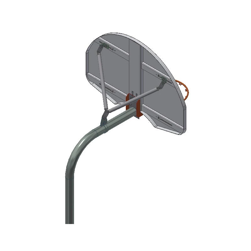 Designed to complement playground basketball courts, the GN455R 4-1/2″ O.D. rear-mount gooseneck post with 5′ extension arm provides support for backboard and rim weighing up to 100 pounds combined. Post has a traditional curved design with a fixed height. Extension arm provides a 60″ safe play distance and includes a V-brace to connect to board to reduce vibration. This post is only compatible with rear-mount fan-shape steel backboards.