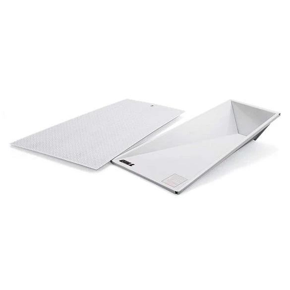 Vault Box- Twelve gauge steel with fold and weld construction. Flanged edges and flared sides. Finished with a white powder coat finish. Meets High School and NCAA specifications. IAAF certified.Lid-Fits over all styles of vault boxes. Constructed of 11 gauge hot rolled steel with anti-slip surface. White powder coat finish.