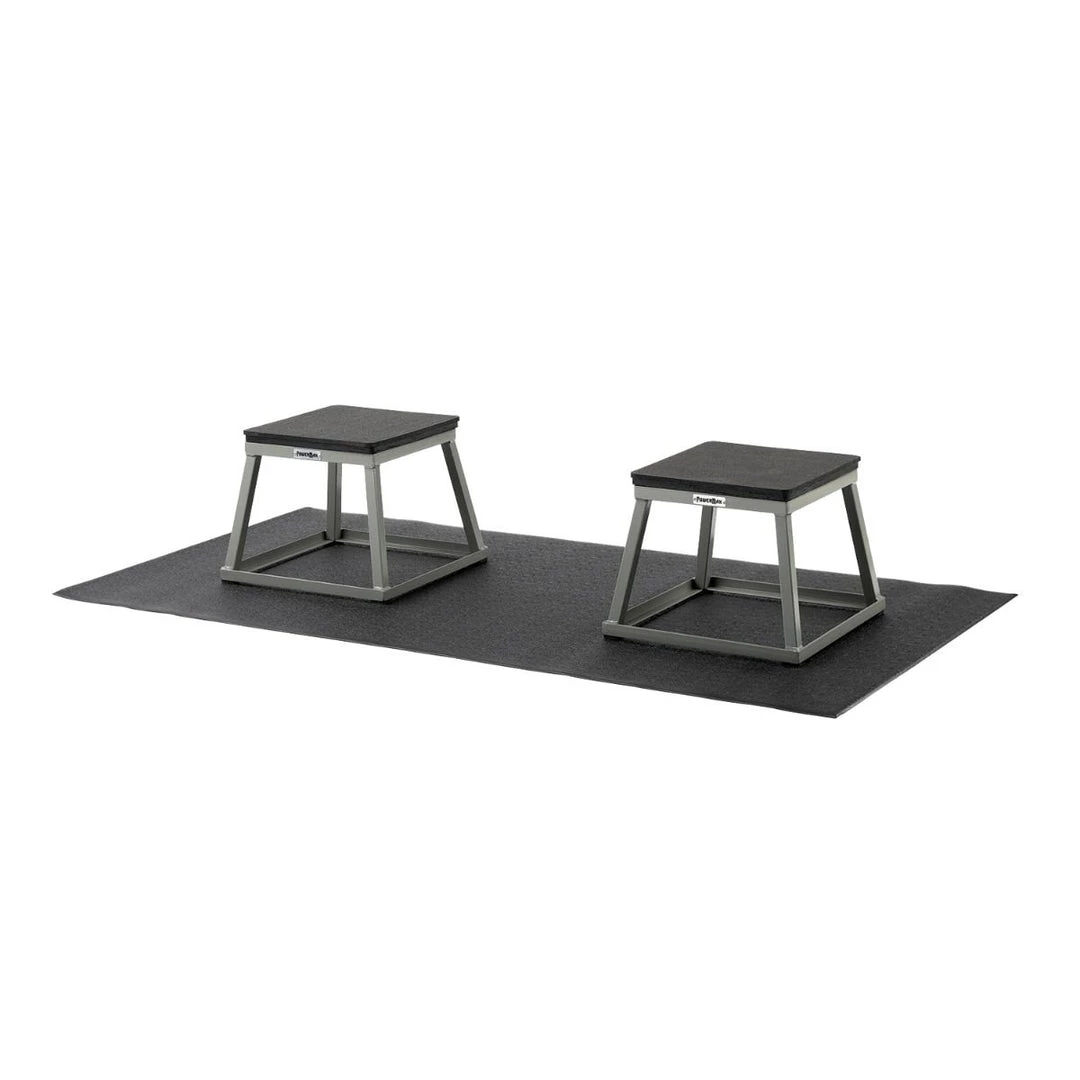 Surface reduces the stress of impact on joints and muscles during explosive training sessions. Steel Plyoboxes shown are not included. 3′ W x 6′ L x 1/4″ thick.