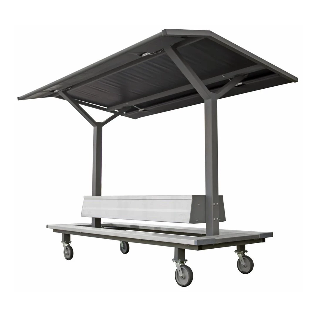 - Roof frame is constructed of aluminum bracing with architectural gray powder coat