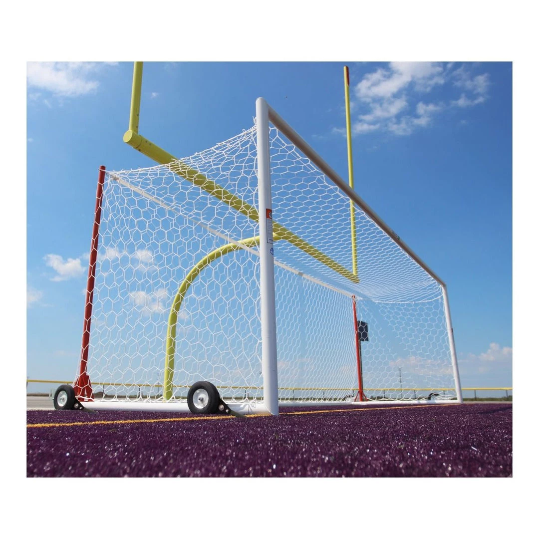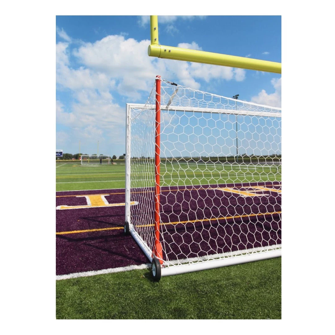 - Package includes goals with wheels, hexagon nets, net support poles, auger anchors and football goal attachment plates