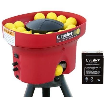 Hit Mini Lite-Balls With Pin-Point Accuracy Hitting a real baseball takes skill, but imagine the skill required to hit a ball the size of a golf ball.Now, with the Crusher 4 Hour Mini Lite-Ball Pitching Machine, you can train your eye to hit a ball approximately two-thirds smaller than a real baseball. Use the included A/C Power Adapter, or when power is not available, use the included 4 Hour Rechargeable Battery. With the Crusher’s Dual Wheel Variable Speed Controls you can hit curve balls and fastballs. Take the Crusher 4 hour anywhere you want, set it up, and swing away. And if you can hit this mini ball, imagine how well you’ll hit a real ball when you step up to the plate.And because the Crusher Lite-Balls are soft, and the Crusher 4 Hour has a rechargeable battery, you can improve your hitting anywhere. Use in the garage, park or your own backyard.