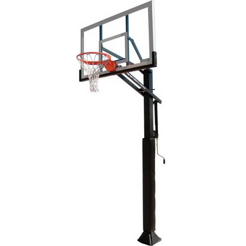 The GC55-LG Basketball System is an in ground basketball hoop designed for realistic basketball action. Its 12 ga. 5″x5″ one piece post is thicker and far superior in strength to competitors thinner 2-piece post design. The GC55-LG includes a convenient anchor bolt mounting system that makes it easy to level or relocate the basketball goal. Enjoy authentic gymnasium play with a professional quality breakaway rim and 5/16″ thick tempered glass backboard that provides true, authentic rebounds. The overhang provides plenty of area for post play. The all-steel actuator allows simple and precise goal adjustments from 7.5 to 10 feet.