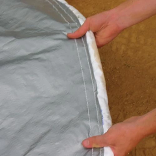 - 6 oz polyethylene silver/white mound cover with weighted hem