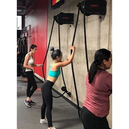 Experience dynamic resistance Rope Training with the Marpo X8 COMPACT ROPE TRAINER. It is designed to mount on group training cages or other rack like equipment as well as on concrete walls. Its compact design makes it very easy to fit in small foot print areas. When installed in clusters, it is the perfect group training tool.