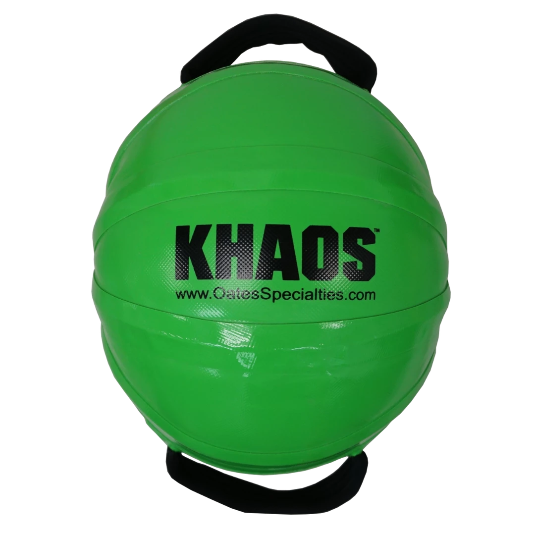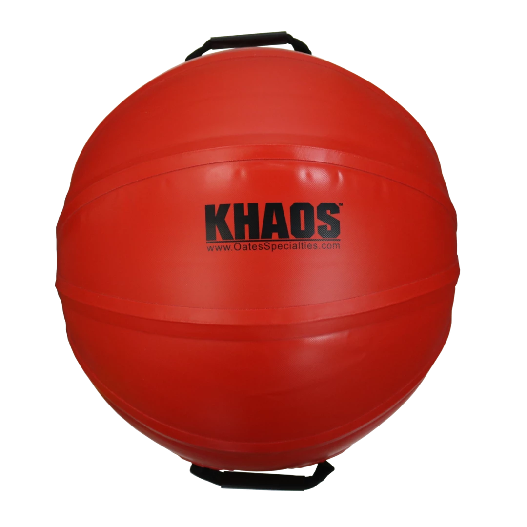 The Khaos® Water Products (Water Ball w/Fixed Handles, Waterboy w/Fixed Handles, and Water Yoke) are filled with water and air to provide an unstable weight that constantly shifts, forcing athletes to brace and stabilize through various movement patterns. The Khaos® Water Ball has two fixed handles on either side that allow for rotational movements and a variety of sport-specific movement patterns. The Khaos® Waterboy has four handles with two sets that run perpendicular to each other. The length and tube-like shape of the Waterboy make it perfect for those trying Olympic-style lifts or frontal and sagittal plane movements. The Khaos® Water Yoke comes with two water spheres connected to a 52” bar with straps. The Yoke is a great option for athletes wanting to increase their weight while keeping the unpredictable load during frontal and sagittal plane movements. The straps allow the spheres to sway and make the water shifting very erratic and more advanced.