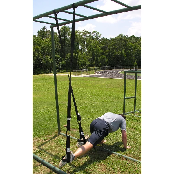The TAP™ Suspension Trainer uses body weight and gravity to develop strength, balance, flexibility, and core stability simultaneously. The intensity of an exercise can be increased, or reduced, simply by increasing or reducing the angle of the body in relation to the floor/ground. Serious athletes can use this implement to develop core body strength, as well as joint and muscular stability, thereby reducing the chance of injury.