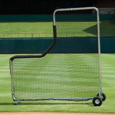 Protect pitchers as they practice throwing heaters, changeups and curve balls with this Baseball Pro L-Screen. Pitchers can focus on throwing strikes knowing they are fully covered by the screen’s oversize design. Whether it’s a soft hit toward the mound or a blazing fast line drive, the slip-over, pillowcase-style nylon netting and aluminum frame prevent the ball from hitting the pitcher and causing season-ending injuries. It’s easy to roll the screen out onto the field before practice begins, as the no-flat wheels can traverse grass and dirt surfaces.