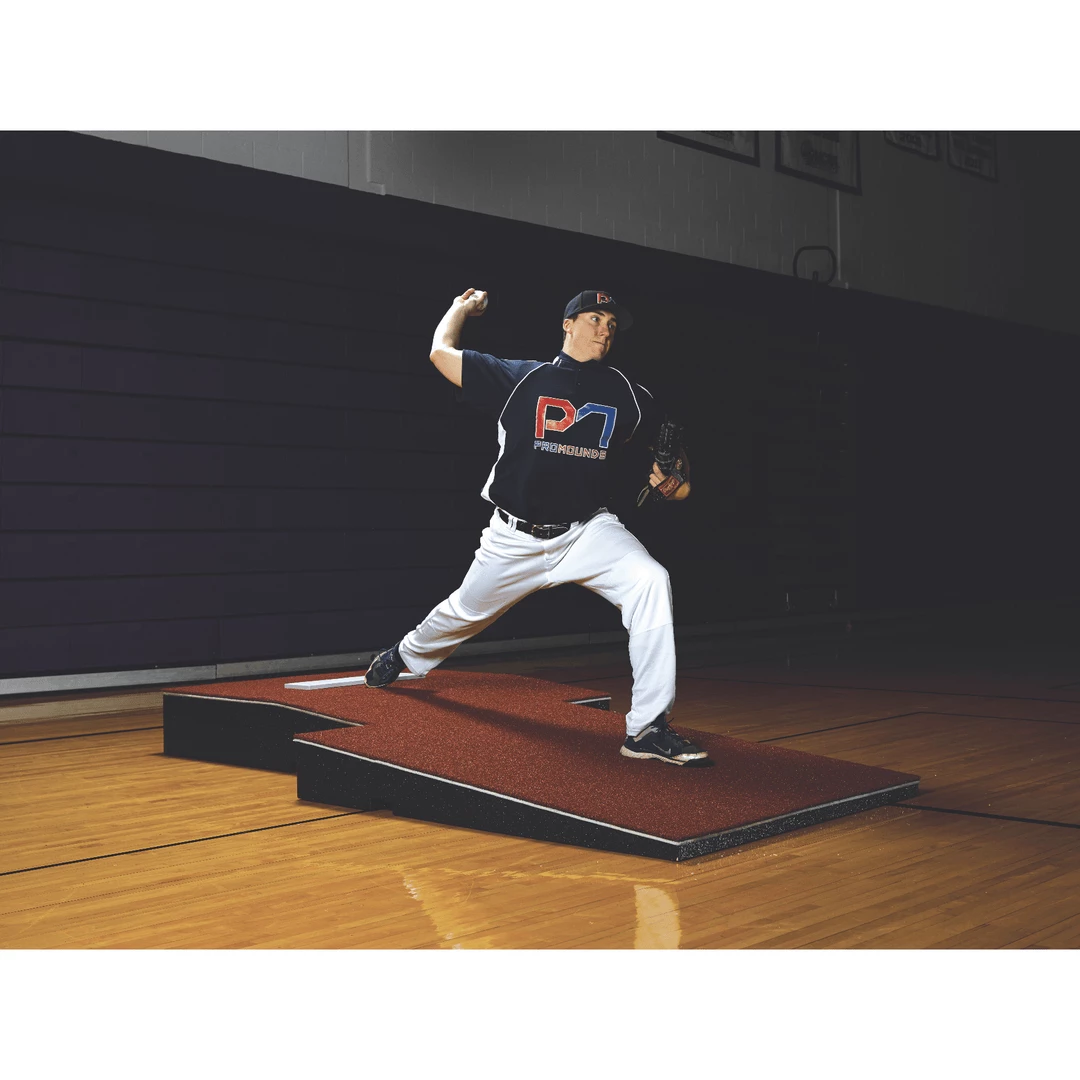 Highly portable and highly durable, it is no wonder why the ProMounds professional two piece portable pitching mound is a best seller! This practice pitching mound is designed for indoor use and will not scratch the floor of your gym. The two piece design makes it easy for you to carry, handle, and store your pitching mound with convenience. The design allows your pitchers to offset the landing area, allowing for a 6’ landing area for left or right-handed pitchers.This mound is made of very durable and lightweight foam that is spike resistant. The durability of the foam on this mound will last you many seasons and will not fall apart.Â