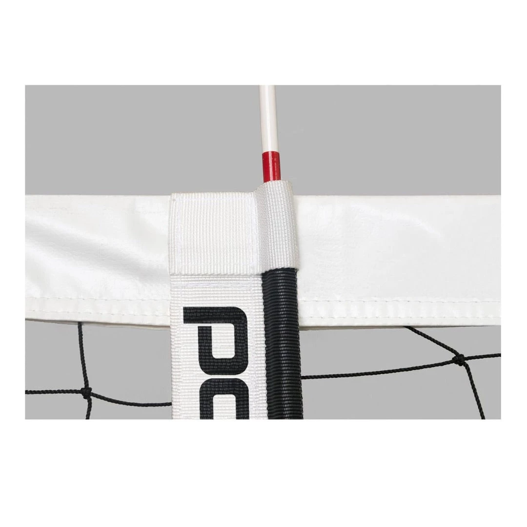 Boundary markers are 2” wide white polyester reinforced vinyl straps with hook & loop attachment strips to secure to the net.