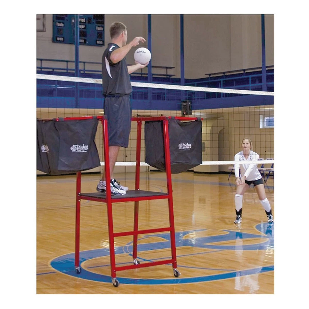 The ultimate coaching tool. Simulate defense, blocking, or passing drills from a comfortable 30-50” height. Constructed of heavy duty steel with 4 locking casters for easy transport. Includes two nylon ball baskets.