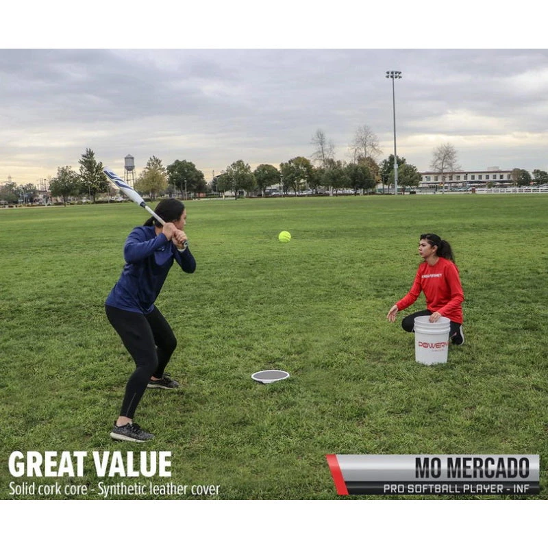 - DURABLE; PowerNet Softballs have solid cork core with synthetic leather covers; Raised red stitching