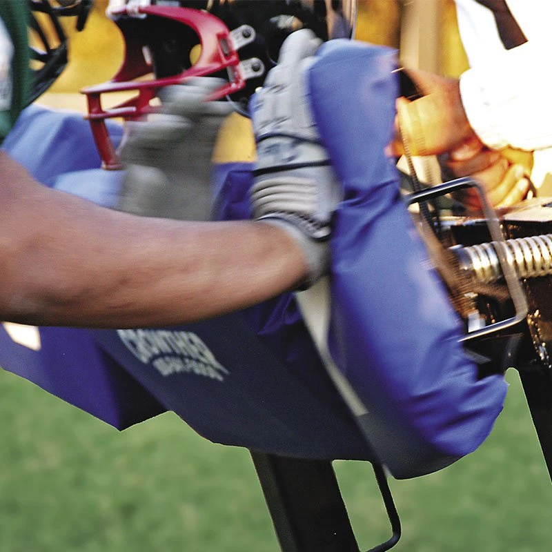 - You can easily adjust the pads from pass-pro to goalline height by removing two pins and raising or lowering the top chassis.