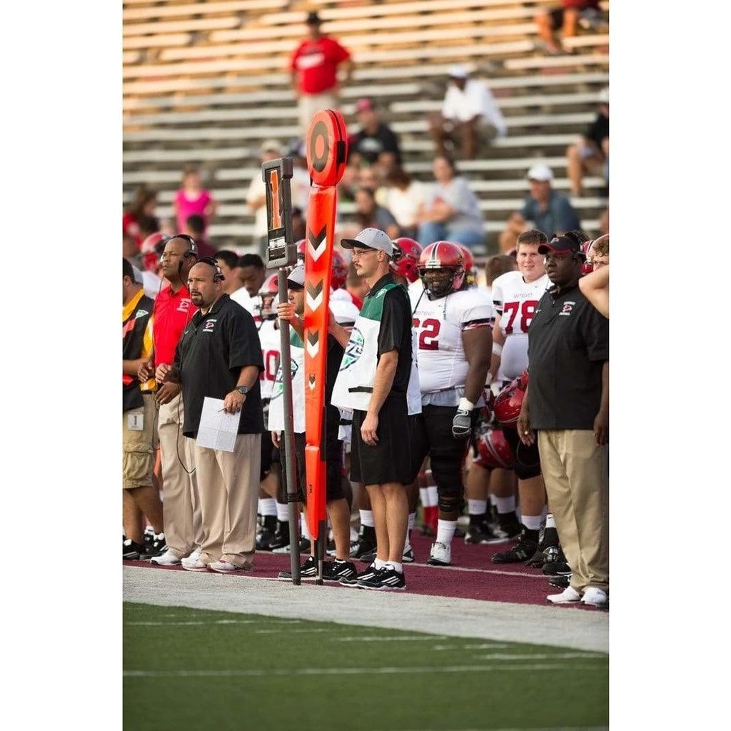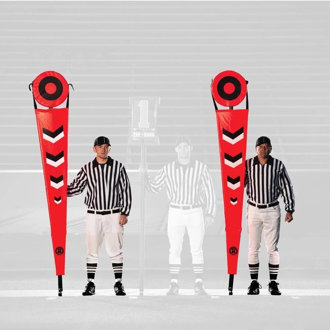 - Crafted from a special rocket-red vinyl, these markers quickly draw the eye to assess the distance to the first down.
