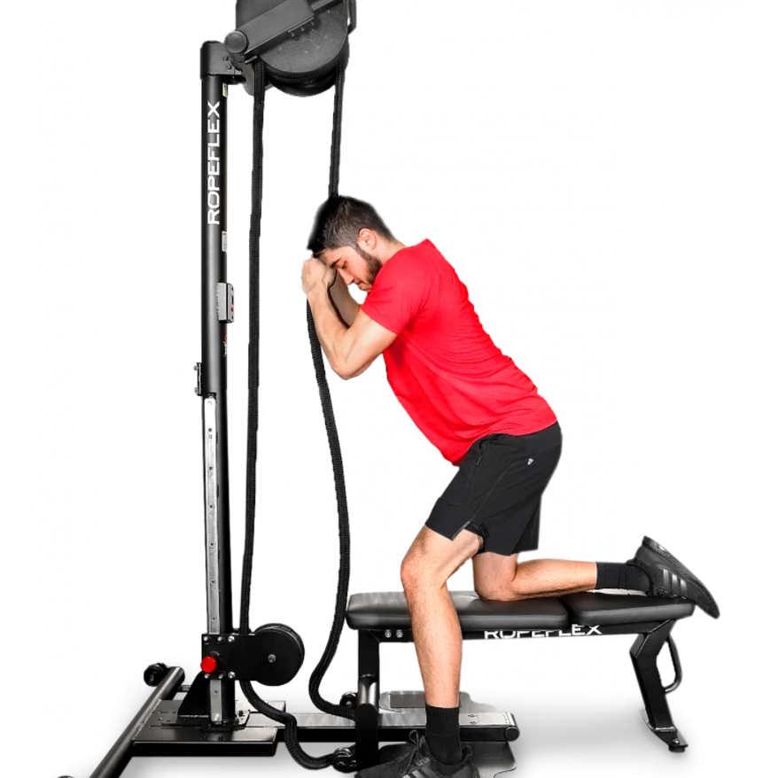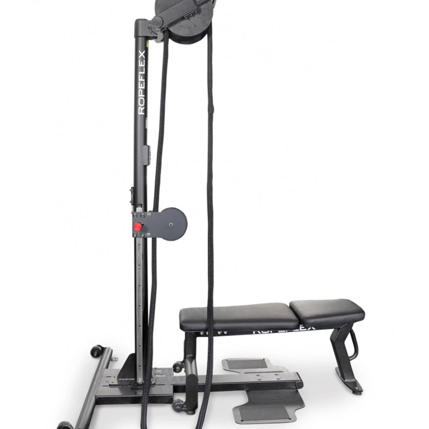 - Removable cushioned seat for sitting and standing rope pulls