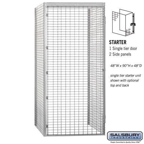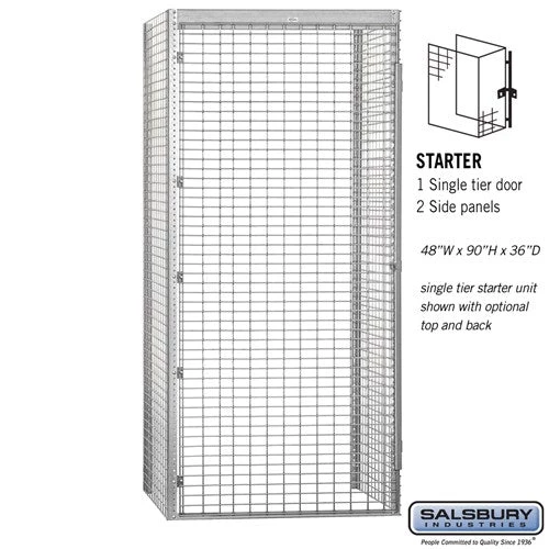 - Starter units include 1 single tier door with padlock hasp and 2 side panels