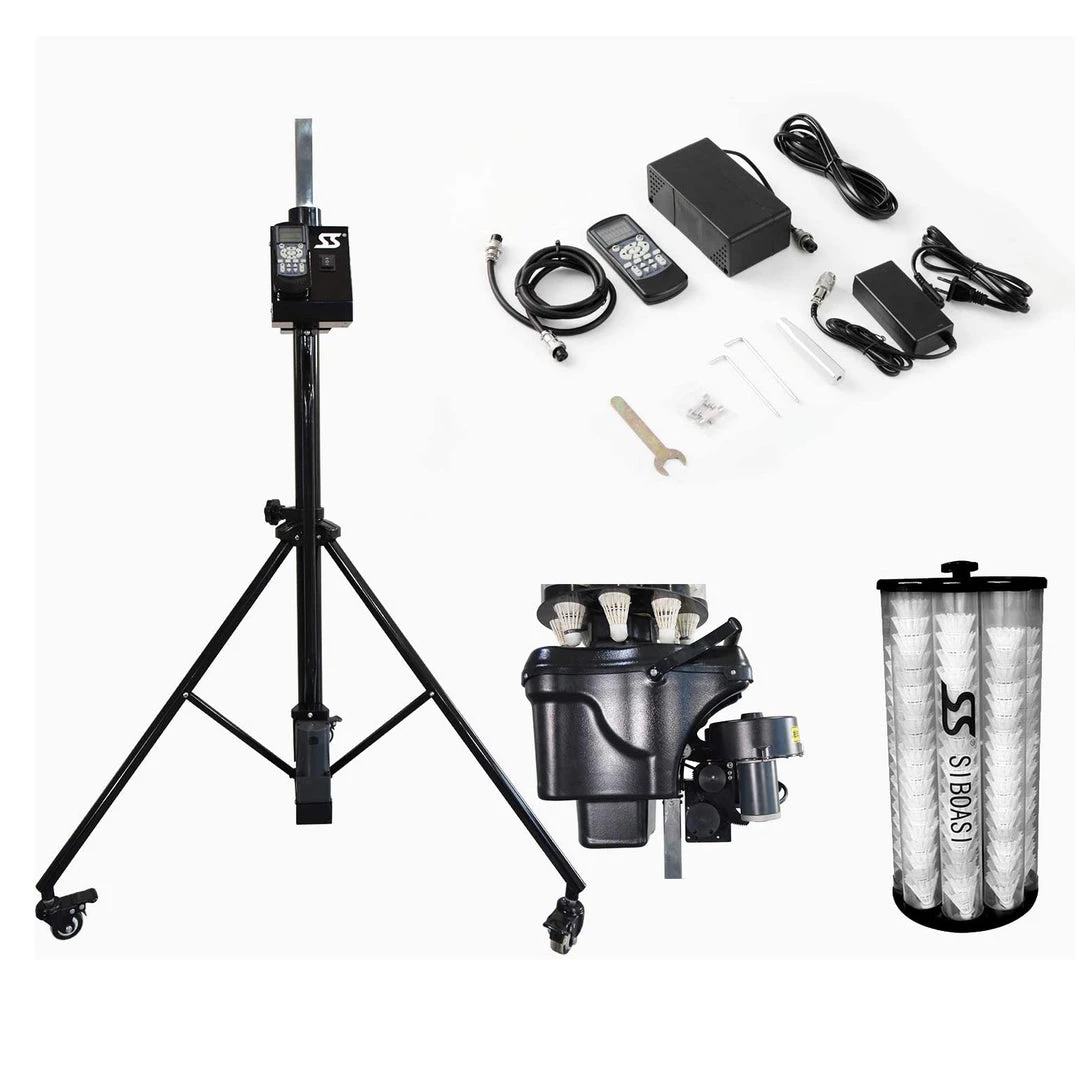 It is the most advanced battery operated portable badminton shooting machine making it perfect for intermediate players to replicate various badminton training scenarios to focus on core elements of their game. You can use the pre-programmed drills or customize your own. The B1600 features custom drills to 28 court locations. Full function LCD remote control (speed, frequency, trajectory, etc).