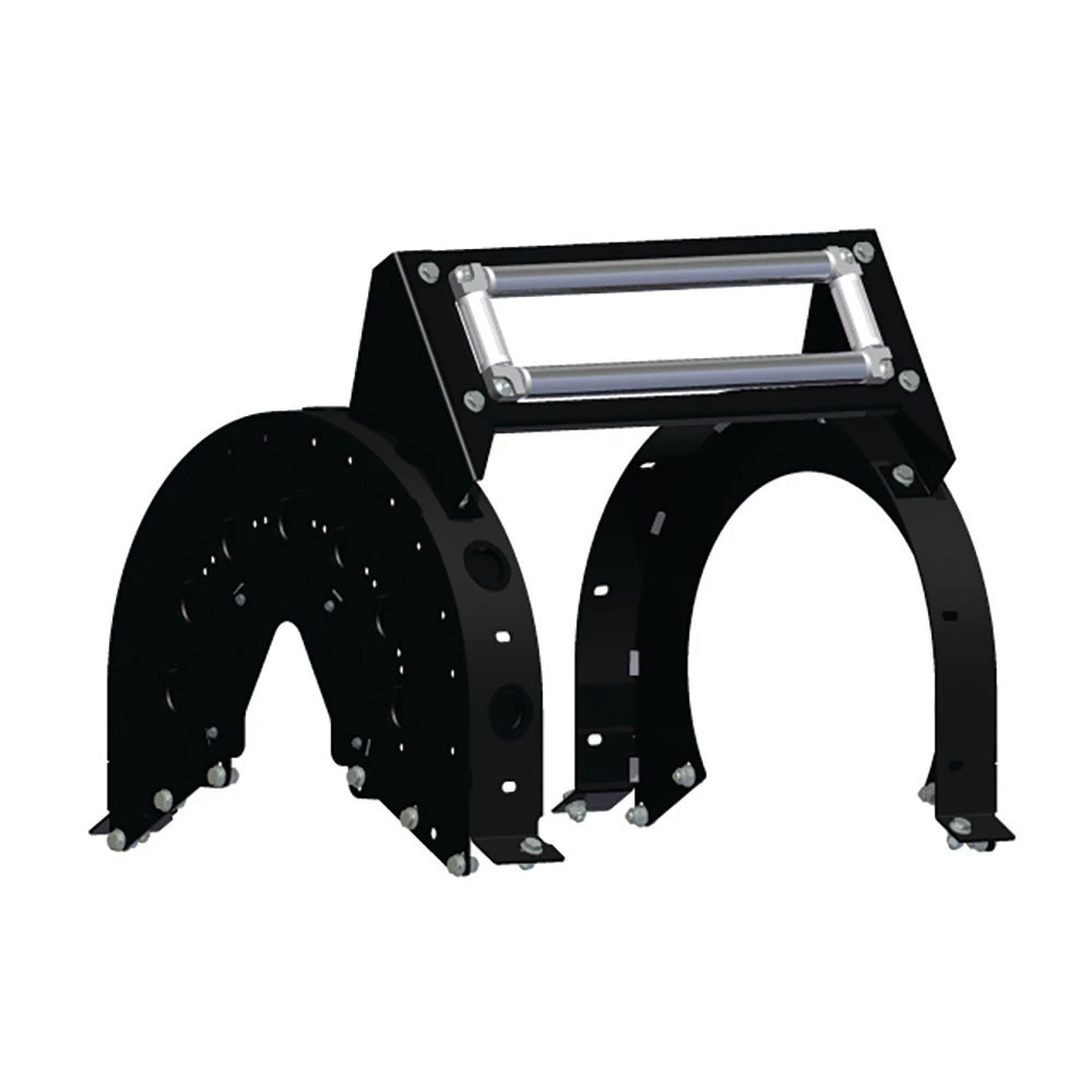 The Universal Bracket, made from 12-gauge, heavy-duty, powder-coated steel, functions as a chain/gear guard and allows for four versatile payout degrees (0°, 30°, 60°, and 90°) for mounting rewind crank, three- or four-way roller guide, and a three-way pin. The Universal Bracket also includes a removable center guard cap for easy bearing access.