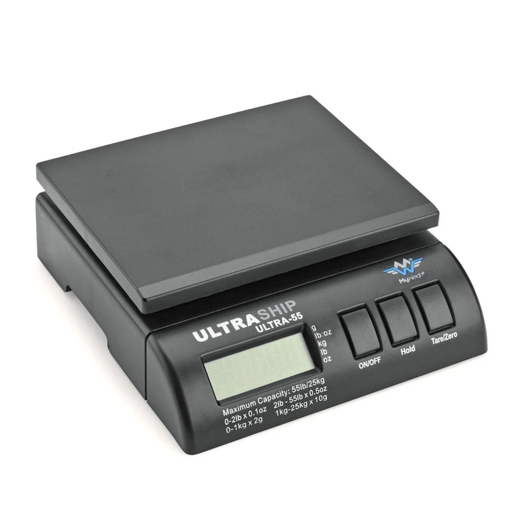 - Large 55 lb capacity scale with “easy press” buttons