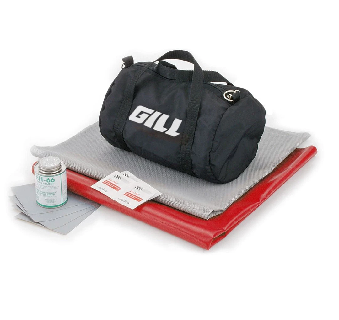 Repair minor tears or holes. Kit includes a 30″ x 30″ solid vinyl patch, a 30″ x 30″ gray mesh patch, 4 small gray vinyl patches, vinyl cement, and carrying bag.