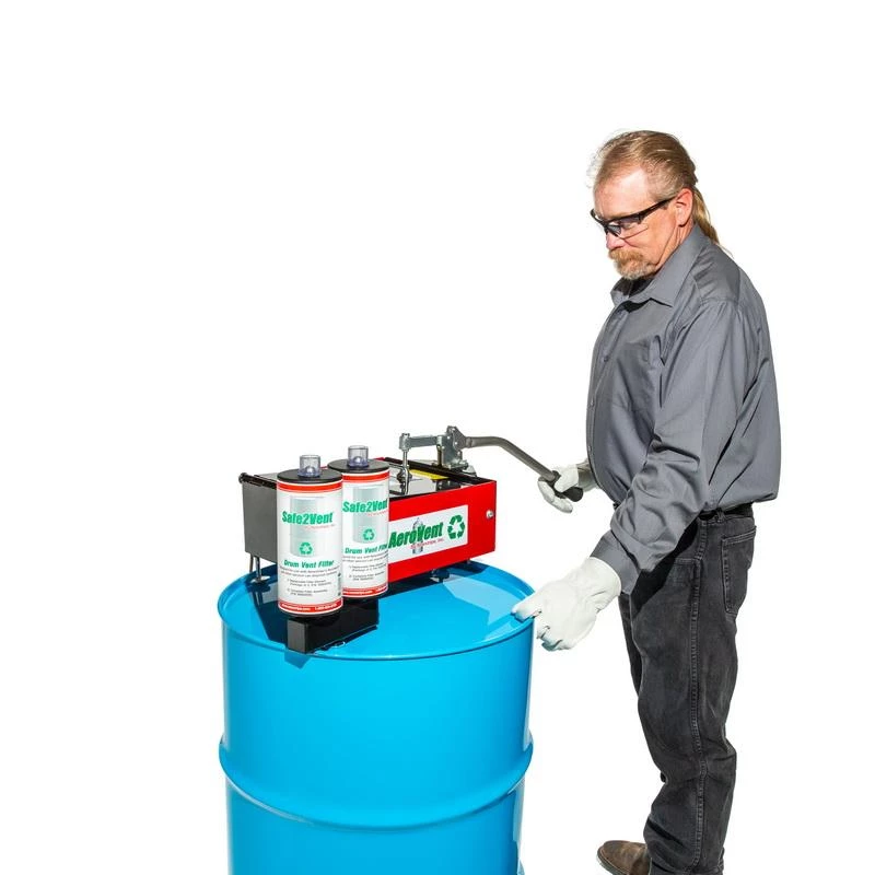 - Economical – The AeroVent®3X is a high production disposal system priced lower than many single can units. It is faster and processes up to three cans at a time. Plus, the Safe2Vent® filters have more carbon media and are more cost effective than any other drum vent filter.