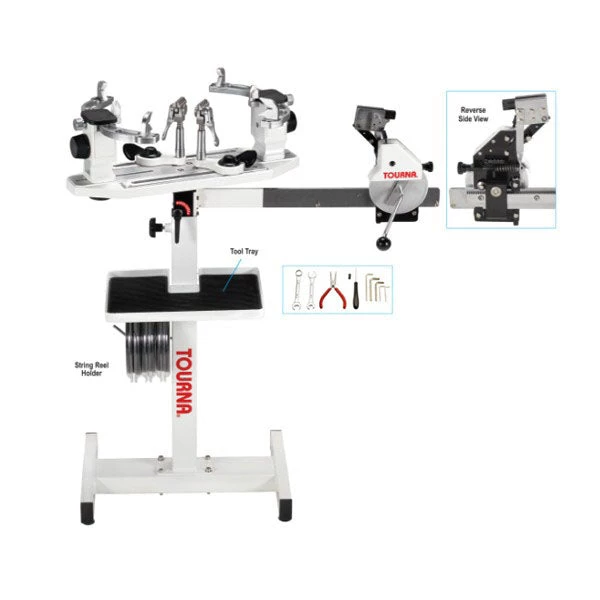 The Tourna 300 CS is a top level manual crank style tennis stringing machine. The 300 CS features a 6-point self leveling mounting system with arms that ensure secure mounting.Â